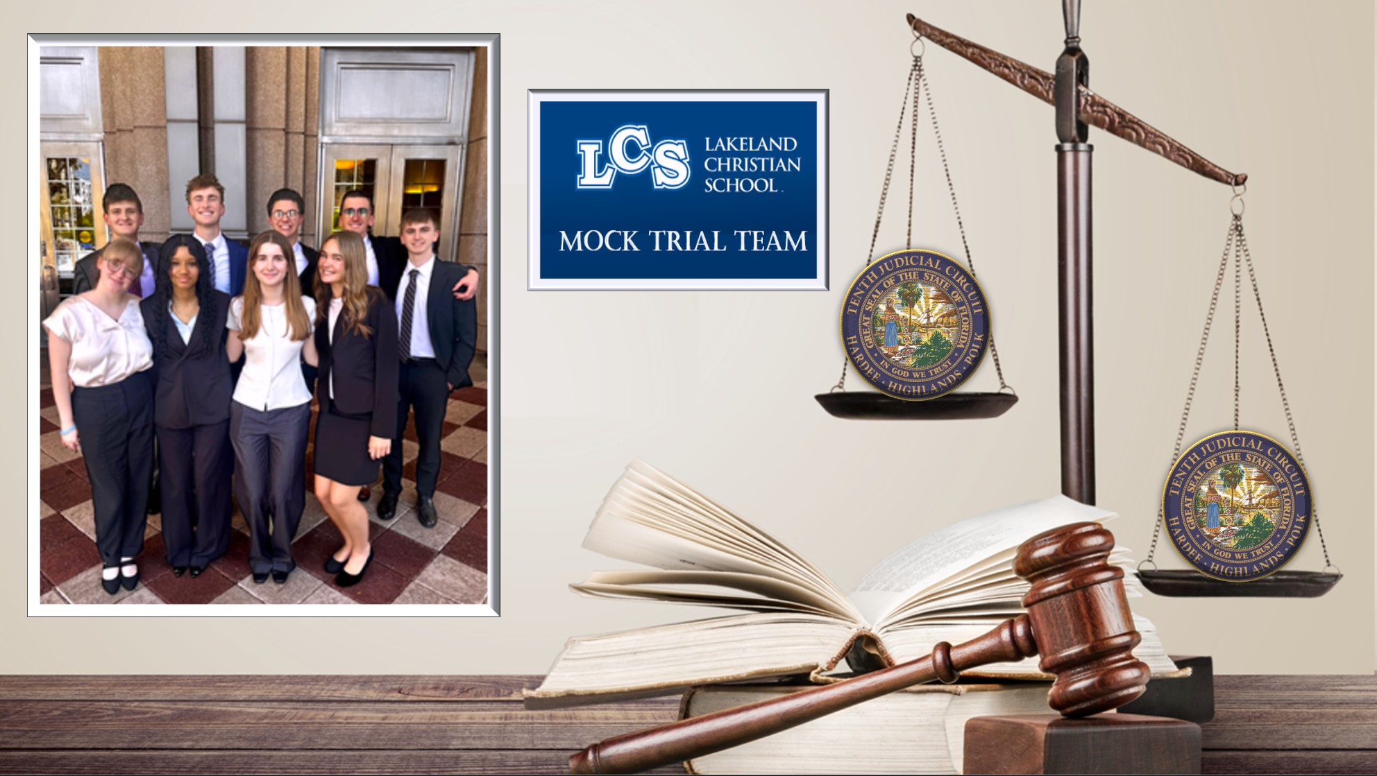 The Lakeland Christian School Mock Trial Team advanced from regional competition on March 6, 2026, to represent the Tenth Judicial Circuit at the Florida High School Mock Trial State Finals, held March 26–28 at the Orange County Courthouse in Orlando, where the team prevailed in every round of competition, capturing the State Championship.